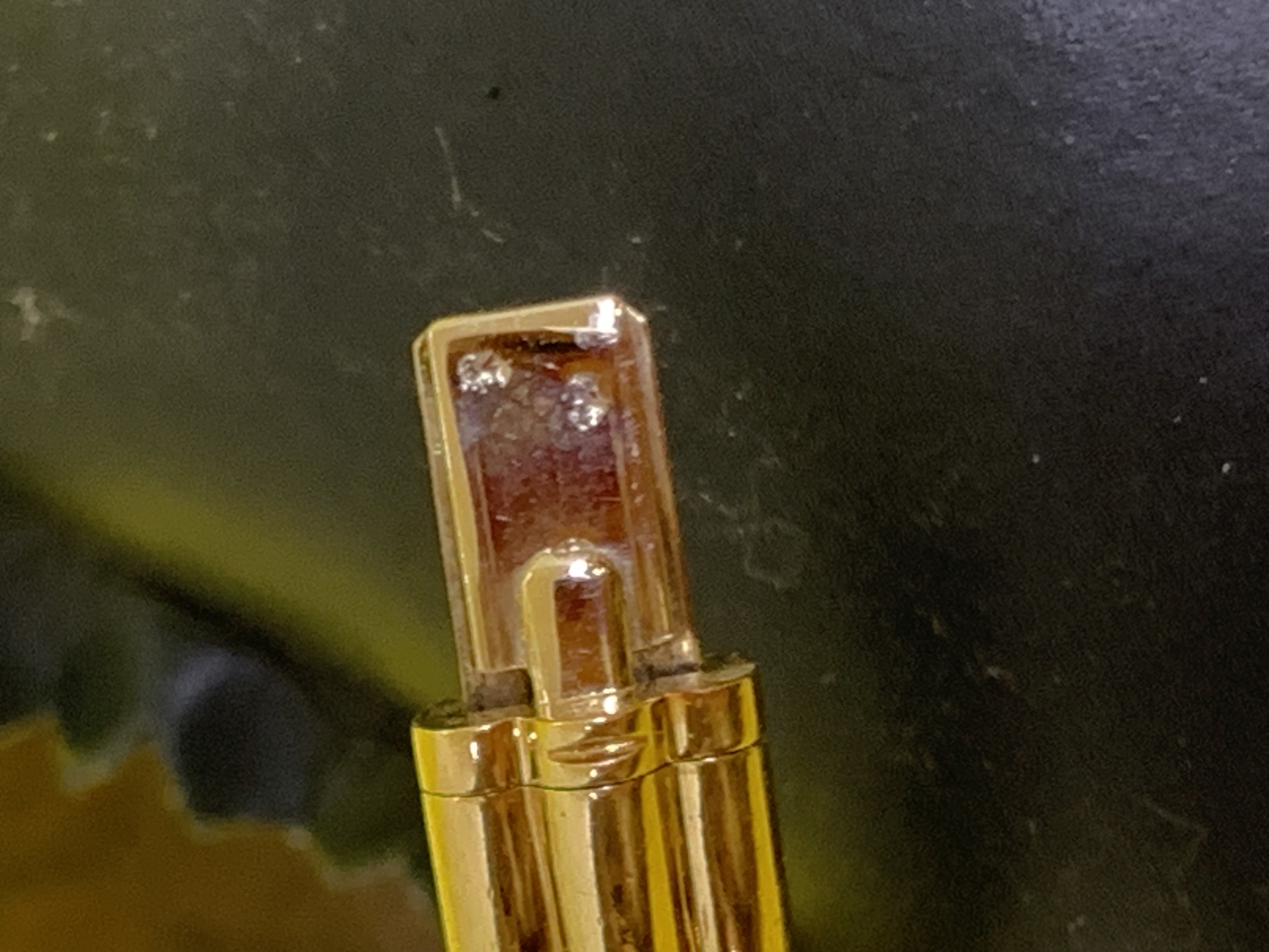 Consta de 117 brillantes que hacen en conjunto 1,17 kilates, y un peso total de 34,22 gr de oro.